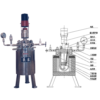 GSA型反應釜采用端面稀土耦合驅動器,具有靜密封、無泄漏的特點。釜體材料主要采用1Cr18Ni9Ti 不銹鋼,并可根據不同介質要求制作316L不銹鋼、鈦材(TA2)、鎳材、鉭材、鋯材、哈氏合金、內襯聚四氟乙烯等特殊材質。攪拌軸承采用耐腐蝕不銹鋼軸承,適合高轉速、加氫催化,低粘度物料的攪拌,攪拌槳采用推進式攪拌漿。加熱方式一般為干式電加熱,也可根據用戶要求制作電加熱導熱油加熱或夾套加熱。帶有多功能控溫、控壓數(shù)顯控制箱。加熱控制系統(tǒng)采用PID自動溫度控制儀表,溫度控制十分準確。 儀表經整定后,可有效減輕溫度過沖。出料方式有上出料和下出料兩種,供用戶訂貨時選用。該系列產品具有運轉平穩(wěn)、噪音小、操作方便等特點,是用戶進行各種化學反應試驗的理想裝置。